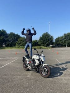 Je begint je opleiding met oefenen voor je examen Algemene Voertuigbeheersing. Je leert de motor kennen en werkt aan de basisvaardigheden. Dit vindt plaats op een afgesloten oefenterrein.